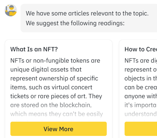 GPT 引发变革浪潮之后,Binance 有在教育方面投入更多的想法。今年 2 月,其官网开始研究 GPT 在加密货币交易教育方面的应用。他们察觉到 GPT 具有易用和对话性的优势,能够提供类人般的回答,对帮助理解加密货币知识等方面有作用。这显示 Binance 早就意识到 AI 在金融教育领域有着巨大的潜力。在 4 月 24 日不久后,Binance Academy 推出了 Binance Sensei 这个由 AI 驱动的学习辅助机器人,目的是为用户提供 Web 3.0、区块链和加密货币的免费教育,这进一步体现了 Binance 对借助 AI 进行加密货币教育的重视。