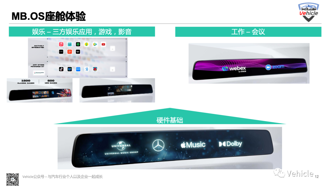 MB.OS系统理念被广泛应用,其运行离不开硬件芯片、系统软件应用层以及数据云的支撑。在硬件芯片方面,奔驰的智能座舱和智能驾驶系统使用了类似英伟达的高性能芯片。面向未来,预计将有90%的微控制器(MCU)由少数几家供应商提供,这些MCU将致力于实现标准化和高效化。