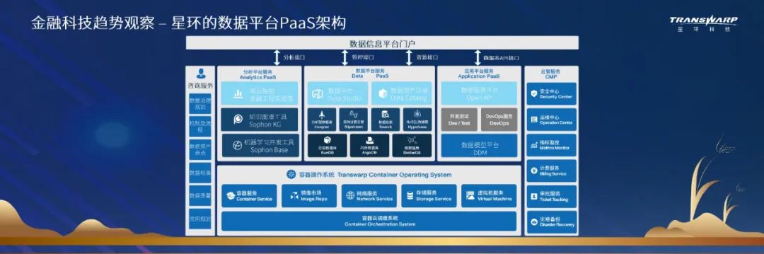许多金融机构面临特殊情况,同时拥有老旧和新型系统。他们无法立即舍弃如Teradata、Cloudera、Hadoop、星环大数据平台等既有的系统。为此,可以实施特定的过渡策略,比如建立资源池,运用容器化技术,为不同业务团队提供多租户服务。